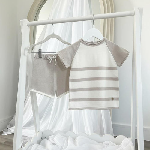 Artesania Granlei Knitted Stripe Short Set- Soft Beige